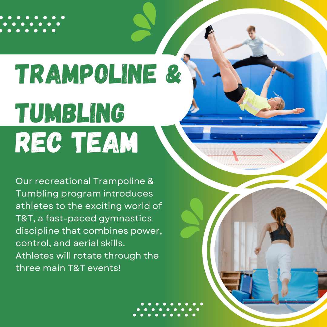 The Rec Team leotard and Trampoline & Tumbling t-shirt are available in the pro-shop.